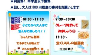 イベント 26/05/03【こどもの日特別企画】みんなの交流会開催! ★みんなの交流会 2026 春★子供から高齢者までどなたでも参加可能です。 【内容】じゃんけん列車、だるまさんが転んだ、みんなで歌おう、クレープを作ってみましょう、空くじなしの抽選会他 【日時】2026年05月03日(日)09... 2026.04.18 イベント全一覧最新